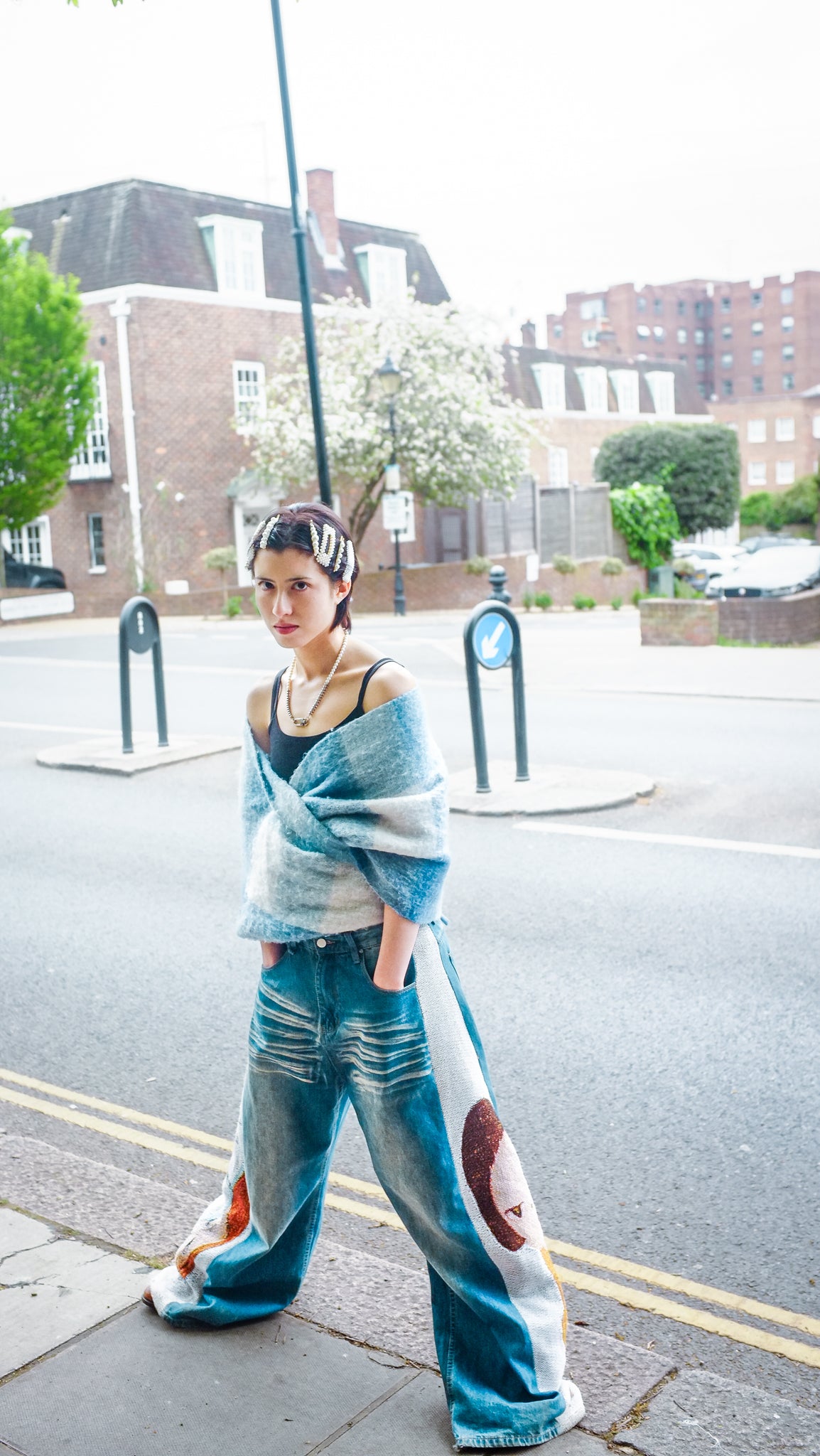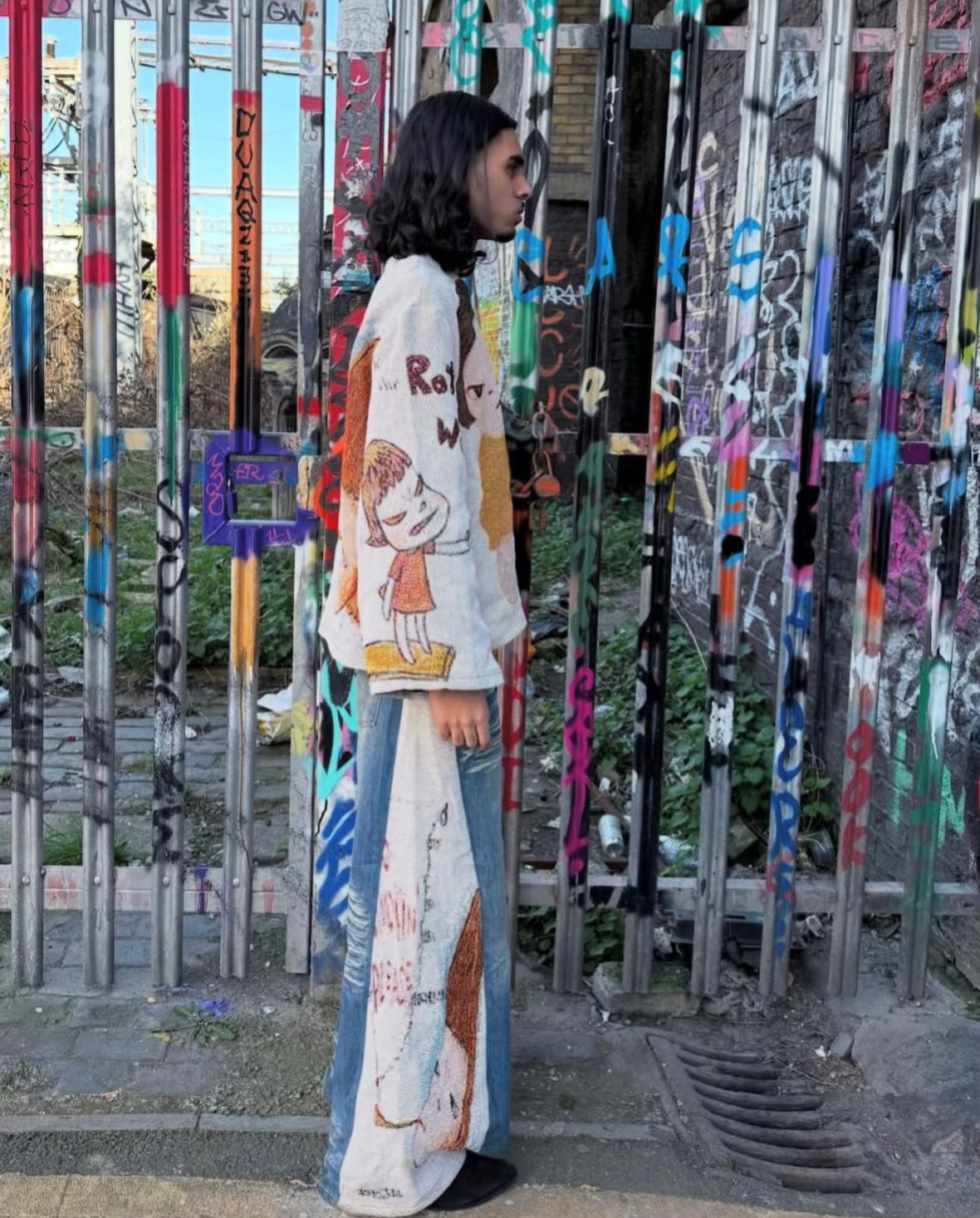 Jeans inspired by Yoshitomo Nara, crafted by Yakii Studios.
